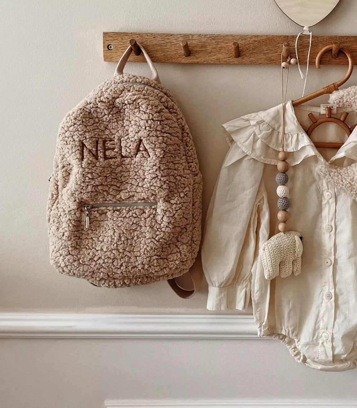 Teddy rugzak met naam voor kinderen - Beige
